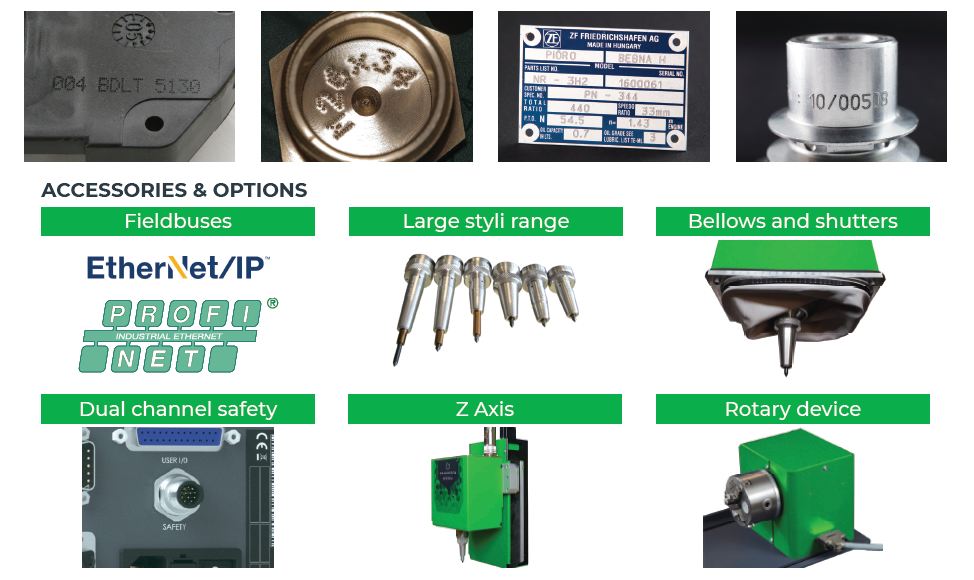 You are guaranteed the marking of each part under the conditions of yield, quality, cost, safety and time frames required by your production planning. Simple to install, simple to use, simple to maintain, the Impact system contributes to the cost-effectiveness of the workshop. This third generation benchtop machine has built up an in-depth 25 years experience on your applications in a lot of business segments. This makes the IMPACT the most robust Dot peen machine on the market.